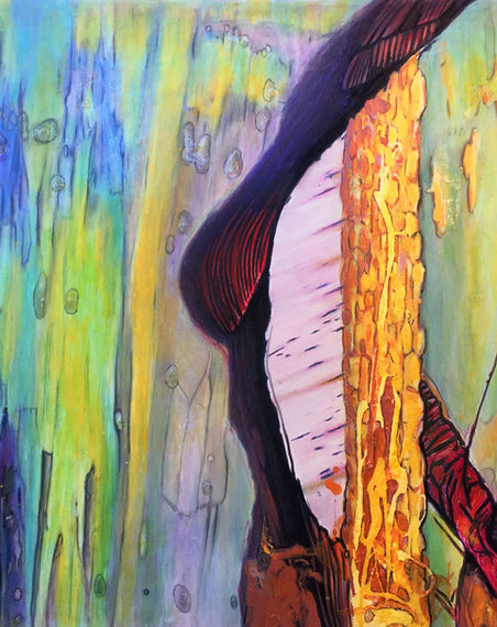 His newest paintings are on canvas in three series. The first is “ Fusion Monoliths “ acrylic paintings. The second series is “ Figures in Landscape “ in acrylic, gallery wrapped with found objects and metallic modeling paste. The third series is “ Eclectic Dreams “ in acrylic that reflect “ Out of Body Experiences “ in a dream like environment.